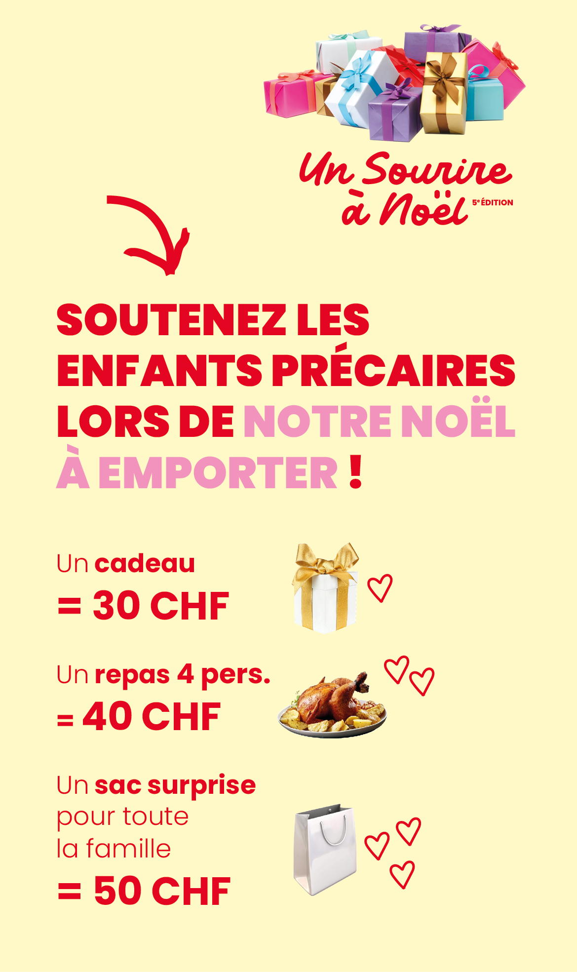 UN SOURIRE À NOËL est une initiative sociale et solidaire qui permet d’offrir à des familles précaires des cadeaux et un repas chaud pour la difficile période des fêtes de fin d’année. Le temps d’une demi-journée, c’est la joie, du soutien, de la chaleur et des souvenirs partagés pour les enfants et leurs parents.